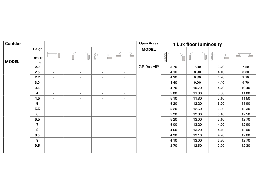 GR-938/4P/ADR Produkt InformationenWasserdichte IP65, Selbsttestende Adressierbare Notleuchte mit 4 Power LEDs in Dauer- und Bereitschaftsschaltung. Für Wandmontage geeignet. Horizontal TabsDokumentation Datenblatt Konformitätserklärung Photometrische Daten Photometrische Daten