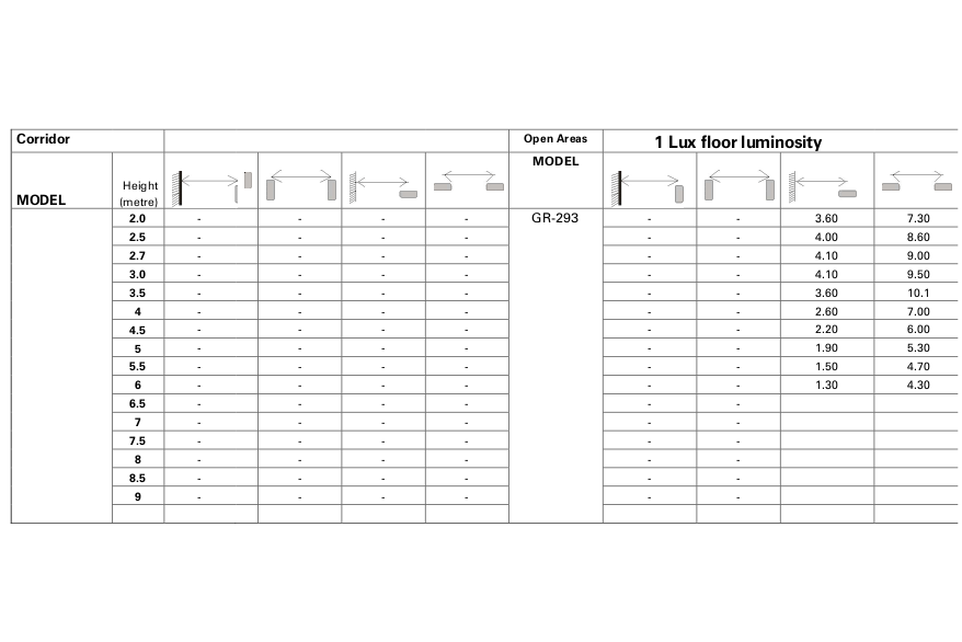 GR-293 Produkt InformationenSelbsttestende IP40 Notleuchte in Bereitschaftsschaltung für den Decken Ein- und Aufbau. Geeignet für Rundflächen-Beleuchtung. Horizontal TabsDokumentation Datenblatt Konformitätserklärung Zertifizierungen BSI Zertifizierung CNBOP Zertifizierung Photometrische Daten Photometrische Daten
